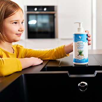 Cleanse and moisturize with Forever’s Aloe Liquid Soap. Our creamy, pearlescent formula nourishes to leave your skin feeling fresh and renewed. Whether it’s on your kitchen counter or in the shower, Aloe Liquid Soap harnesses the power of aloe with other powerful ingredients to provide a versatile, whole-body cleansing experience for the whole family.